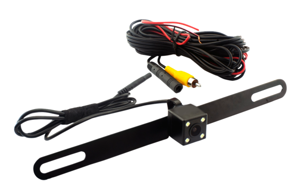 License plate mount vehicle blind spot camera with 4 LEDs. The camera features dynamic parking lines that move when you move. Simplifying maneuvering in even the most complex situations, the parking lines give you a clear understanding of the trajectory of your car before you reverse