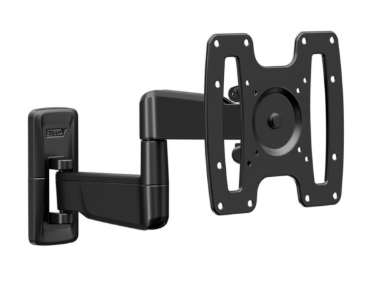 The ERMMS3-01B is a single stud full motion mount that fits most 19” to 43” TVs up to 45 lbs. Enhanced movement provides up to 15-degree tilt and 60-degree swivel for the best viewing angle. This mount can extend up to 17″ and has a profile of 2.9”. Level adjustment allows the TV to be properly leveled after installation due to its 360-degree rotation. Safety tested and UL certified. Integrated cable management helps to conceal unsightly power and HDMI cables.
