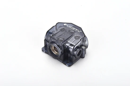 The DB10102428 Wired Distribution Block is meticulously designed to optimize power distribution in high-performance car audio systems. This distribution block is equipped to manage complex setups with its input capable of accommodating 0/2 gauge wire and multiple outputs: one 0 gauge, two 4 gauge, and two 8 gauge. This configuration allows for flexible and efficient power routing to various components, ensuring that each part of your audio system receives the appropriate power level for optimal performance.
